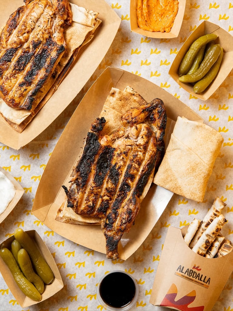 Frisch gegrilltes Hähnchen, saftig und aromatisch, kombiniert mit knackigem Gemüse, hausgemachten Saucen und frisch zubereitetem Brot – so schmeckt ein echtes Alabdalla-Gericht. Jeder Bissen bringt dir den typischen Geschmack, den man von unserem Hähnchen erwartet. Hol dir dein Lieblingsgericht – ob gegrilltes Hähnchen, Hähnchen-Dürüm oder eine Hähnchenbox – und erlebe die perfekte Mischung aus Frische, Hitze und kräftigen Aromen.